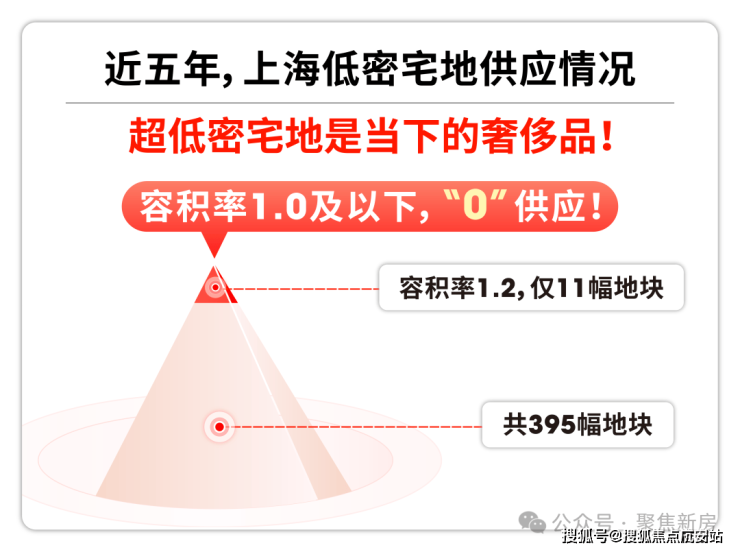 近五年,上海共出让395块宅地,其中,容积率在约1.2以下可以用作开发低密宅地仅有11副。而容积率1.0及以下可以用作开发纯墅区的地块,供应为“零”!