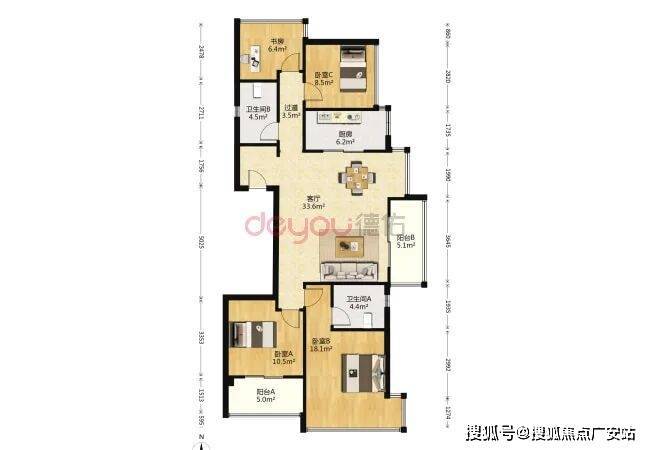 优势:南北通透,全明设计,通风效果好。主卧、厨房和阳台较大。书房远离厨房,可避免噪音干扰。