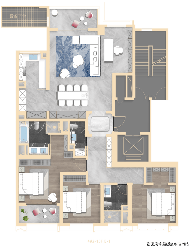 尤其主卧星级套房,配置独立衣帽间、书房,奢华主卫四分离,双台盆+淋浴区+大浴缸+智能马桶,私密性&奢适度无敌;