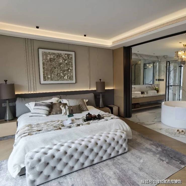 样板间三层打造了五星级酒店般的“总裁套房”,超大面宽落地窗让墅居景观尽入眼帘,独立卫浴间、独立衣帽间、独立书房,尊崇感拉满!