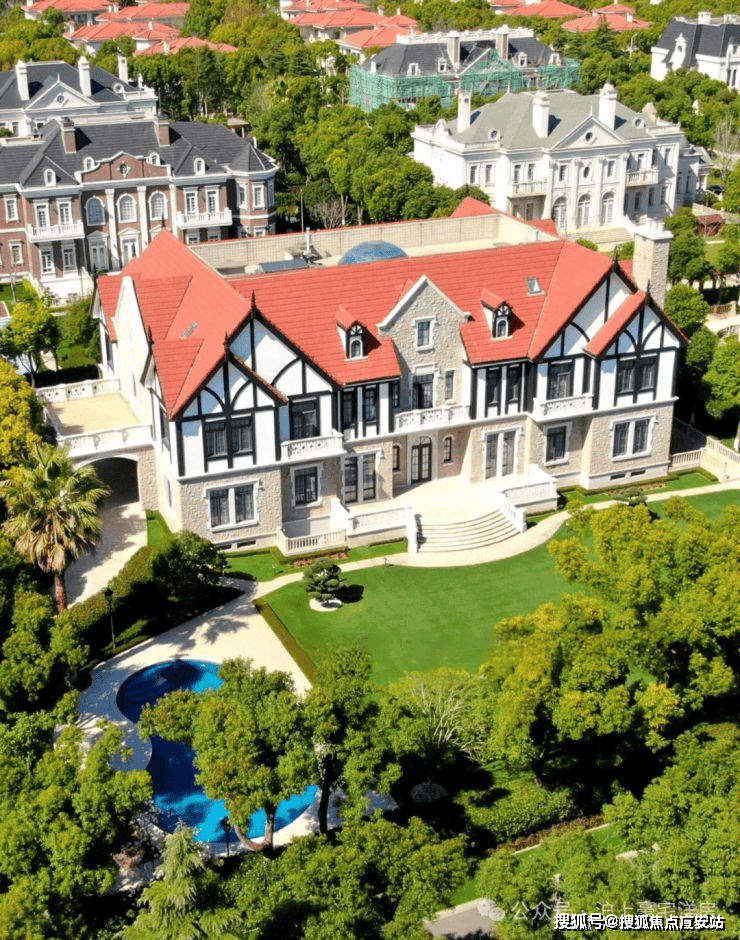 华洲君庭一共仅21套独栋别墅,每栋占地5亩,风格各异,建筑面积在1300~1400平方米之间,超过1000平方米的花园、游泳池、按摩池、室内电梯等都是标配,号称“沪上第一豪宅”。