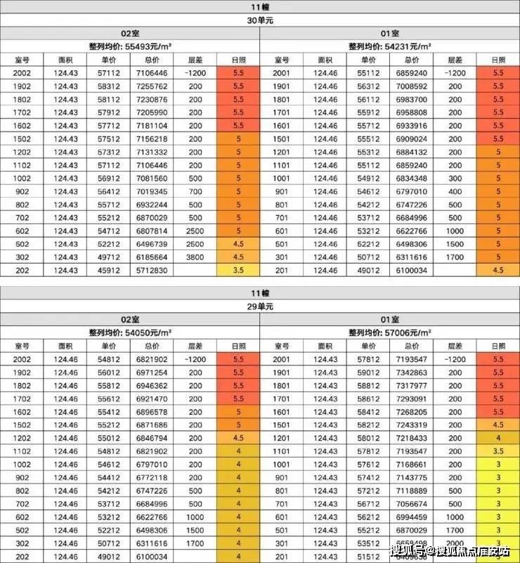 下图我将11号楼的楼层跳价和冬至采光时长做了结合,3点注意: