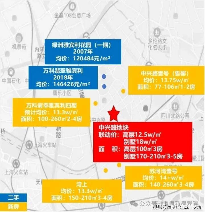 该地块东至公兴路,南至永兴路,西至静安区闸北第三中心小学,北至象山小区;该板块是静安区新房的主力供应区域,地块周边待上市新盘有越秀中兴路项目(联动价12.1w)、静安玺樾12.5w、雅宾利四期(联动价13.3w)等项目。