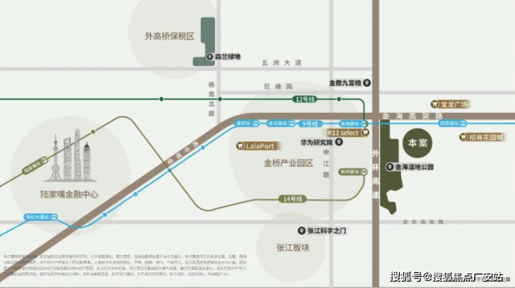 项目西侧约1公里地铁上盖的浦发上城,规划一座K11 SELECT,未来将打造成浦东文化零售新地标,并通过K11商业品牌的设计品味、建筑细节打造,提供更多的零售、亲子、艺术、文化类业态。
