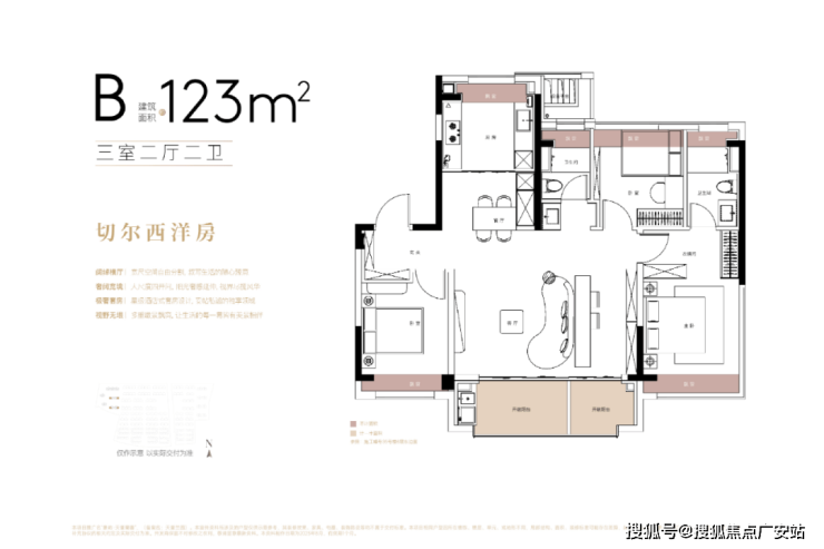 根据设计方案过程稿来看,小高层住宅仅一种户型,为建面约123㎡左右的3房2厅2卫,两幅地块合计约374套!