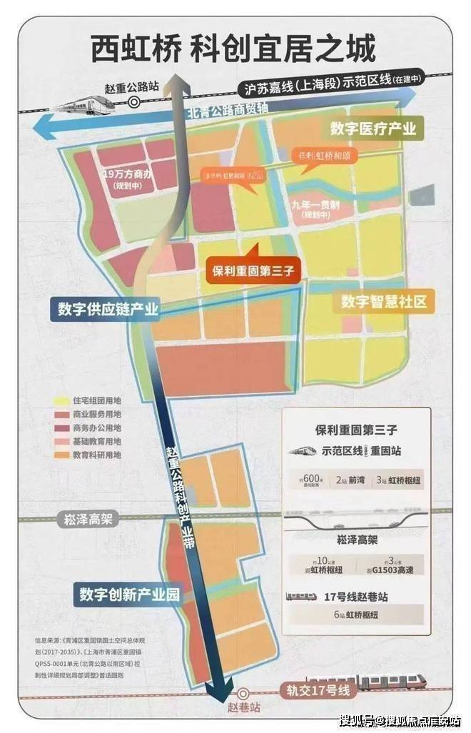 大虹桥未来发展的总目标为“面向全球、面向未来“,新增“大科创”规划,机场示范区线串联,上海湾科创数字港、赵巷千亿产业集群,区域产业实力更加强劲,比肩下一个张江。