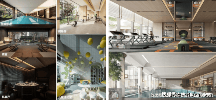 江湾金茂府还打造了约1800㎡下沉式庭院会所, 茶室、私宴厅、行政酒廊、恒温泳池、健身房、瑜伽空间、会客厅、儿童游乐等八大功能;