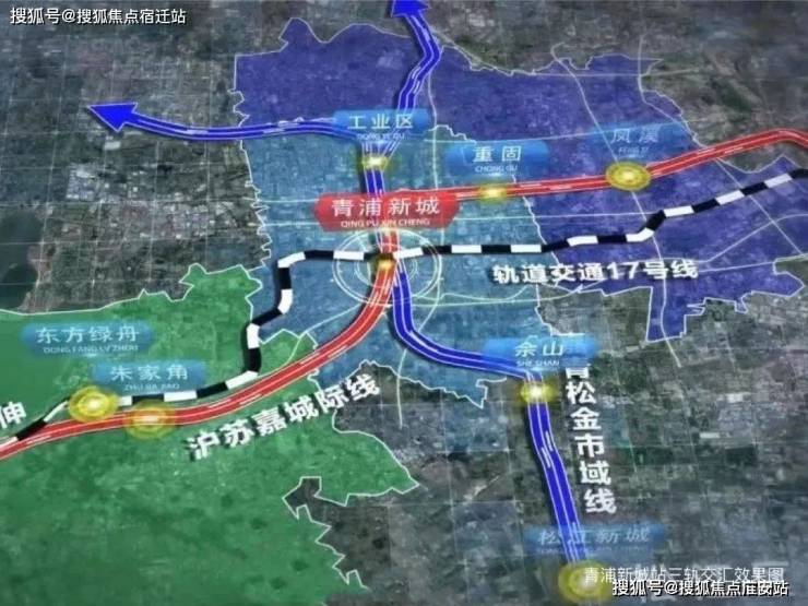 三轨枢纽,将投资410亿元打造的青浦新城综合交通枢纽,实现示范区线(在建)、嘉青松金线(规划)、轨交17号线同站换乘,确定上海面向长三角的门户城市地位;