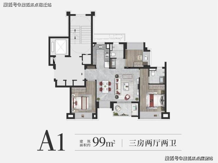 约99㎡3房2卫户型是上海市场中最主流的面积段之一,但项目的户型设计却超脱以往。