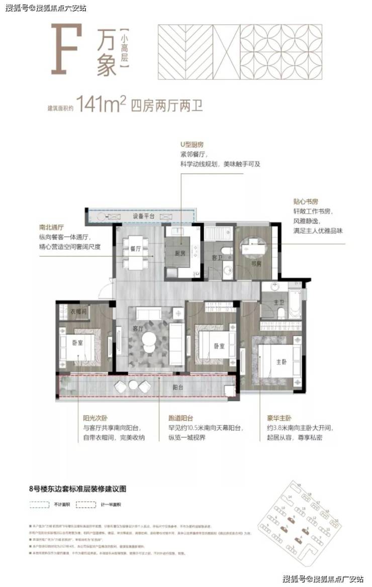 设计亮点:部分户型采用“丝带窗”设计,提供270°观景视野;主卧套房配备观景飘窗,提升居住体验。
