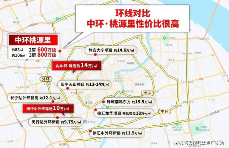 目前,中环筑底价基本14万/㎡:静安大宁约14.6万/㎡,长宁天山13-14万/㎡;长宁贴外环的项目已12.1万/㎡,甚至闵行靠外环的项目已逼近10万/㎡。