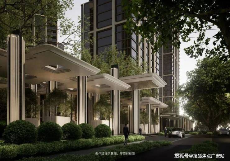 归家礼序:9米挑高"风帆门厅"→辉光柱廊→12组"云帆"阵列→下沉水院→精装大堂