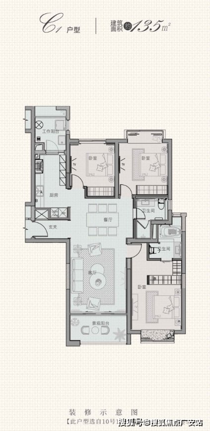 【135平】3室2厅2卫、总价约1580-1600万