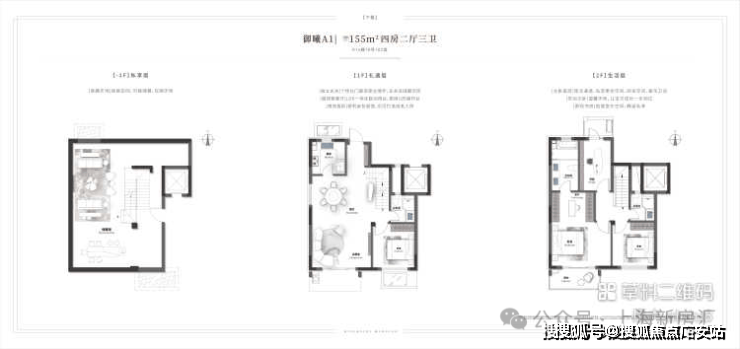 上叠:三层长辈房+奢阔一体化客餐厅,U型厨房空间;四层三房两卫布局,尊享主卧套房;北侧星空露台及顶层,美好生活自由定义。