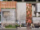项目沿街立面参考原地块建筑风貌,采用扇形圆滑的转角形态,辅以明显的竖线条线脚装饰,按照地形特征“削”出弧度,巧妙设计出立面弧度,形成手风琴样式立面,打造出令人印象深刻的浪漫场景。