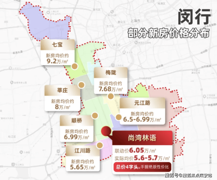 根据一房一价,这批房源整体约5.3万/㎡起,叠加优惠,实际约5.1万/㎡起,这个价格在单价日益高企的闵行几乎绝迹了,堪称捡漏价。
