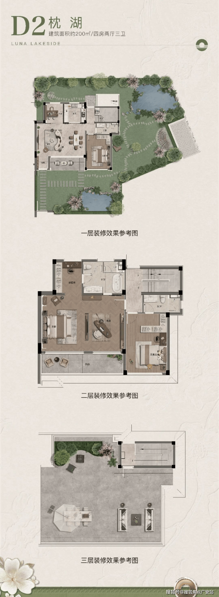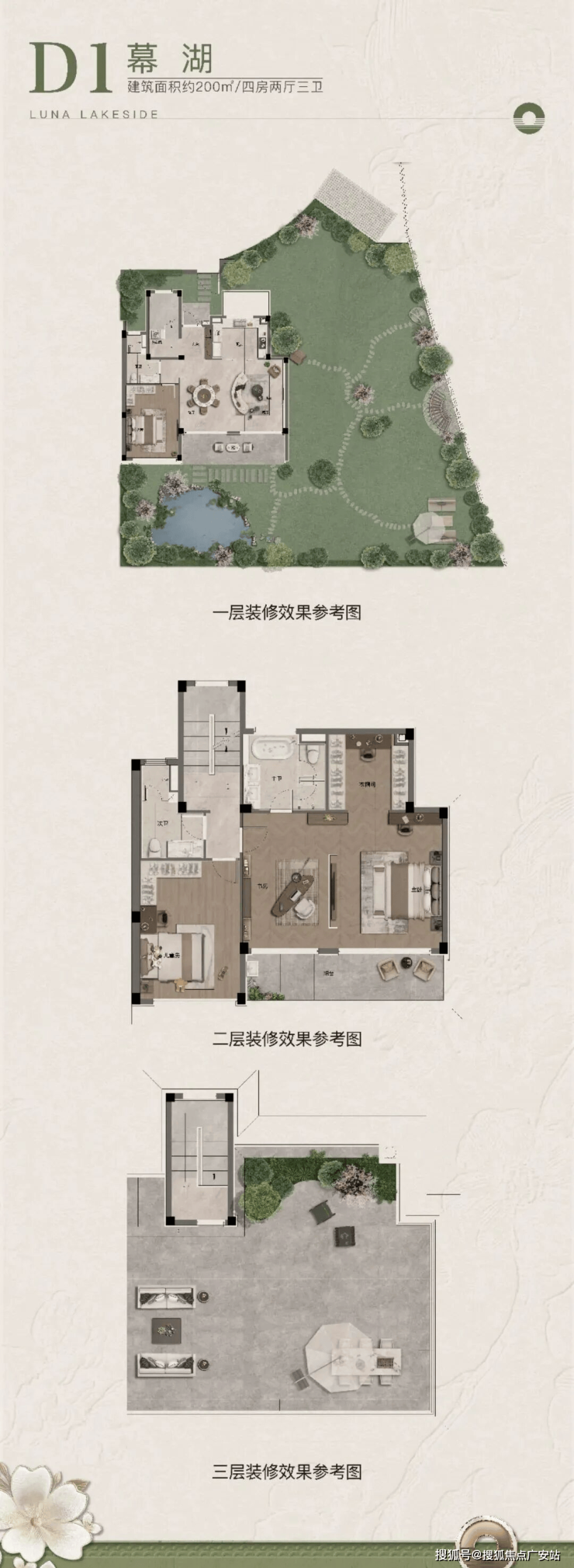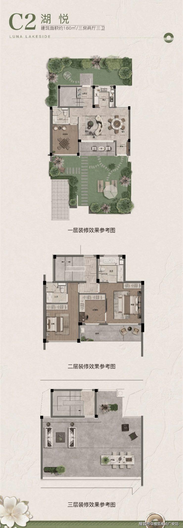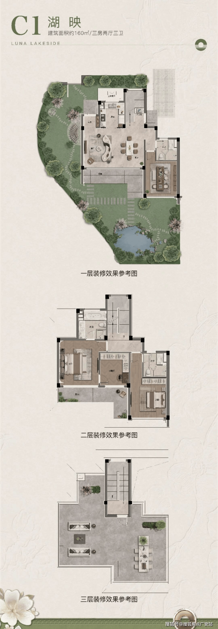 项目以建面约160-300㎡双水岸纯墅区为载体,通过0.8超低容积率的极致规划,让每一栋建筑都成为湖岸的风景线。-户户双院落,最大花园约400㎡:上庭下院的立体空间,将私人领域与自然湖景无缝衔接,让院子成为家族记忆的容器。