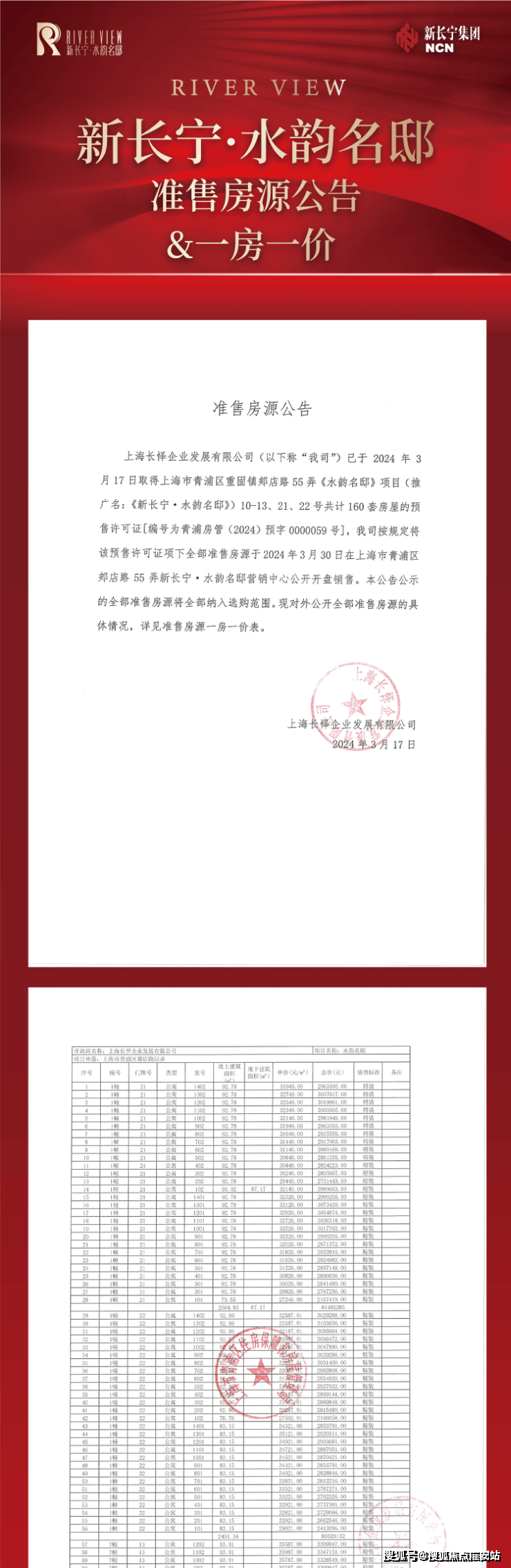 最新一房一价表:新长宁水韵名邸预约热线☎:400-998-7894✅✅