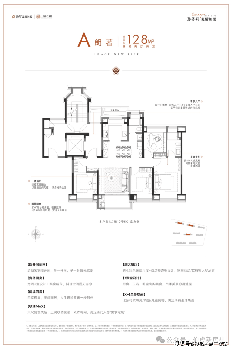 ◎真四开间朝南: 据统计,2024年至今的上海新房市场中,建面在125-130㎡产品只有约9%做到了真四开间朝南,而地铁口的4房产品更是少之又少(数据来源于网络)。保利·虹桥和著建面约128㎡户型真四开间朝南,南向总面宽超13米,对比新房市场同面积段常见的10米面宽,采光和视野媲美千万级豪宅。