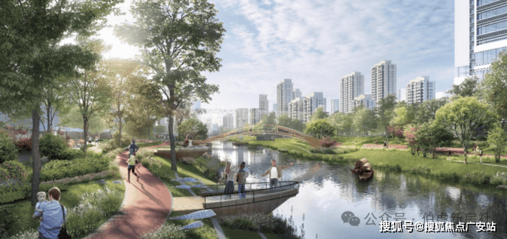 U型廊:约150亩迎虹湖(规划中);绿野谷:约1500米/200亩生态绿廊(在建中,草木正蓬勃生长);一字川:约1700米滨河水岸(规划中);最美归家路:城市风景一路串联(规划中),构建纽约中央公园般的自然奢享。