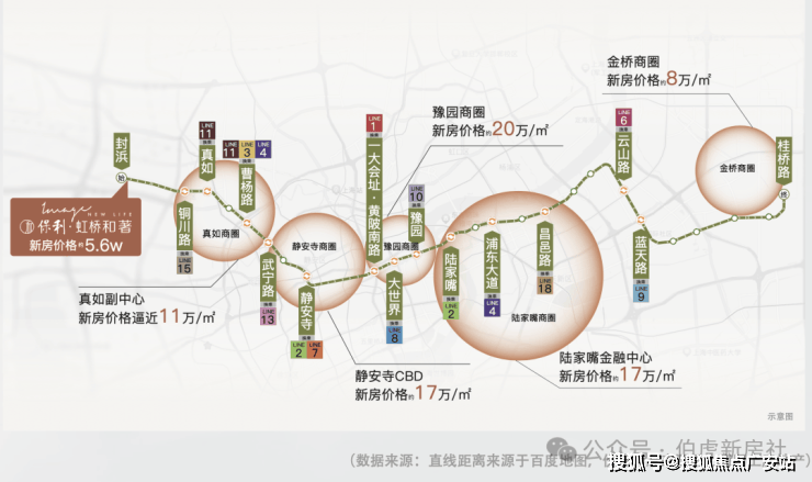2.一线繁华,高质价比: 无需换乘,一线直达繁华市区。相较14号线沿线房价,新天地约21万/㎡、静安寺CBD约17万/㎡、豫园约20万/㎡、陆家嘴约17万+/㎡、真如约11万/㎡……同样在14号线上的保利·虹桥和著,单价5字头,极高的性价比,让购房者在同级别产品中,拥享更好的地段、更好的生活圈,相当于用外环外的价格,买下中环级的地段+产品力!