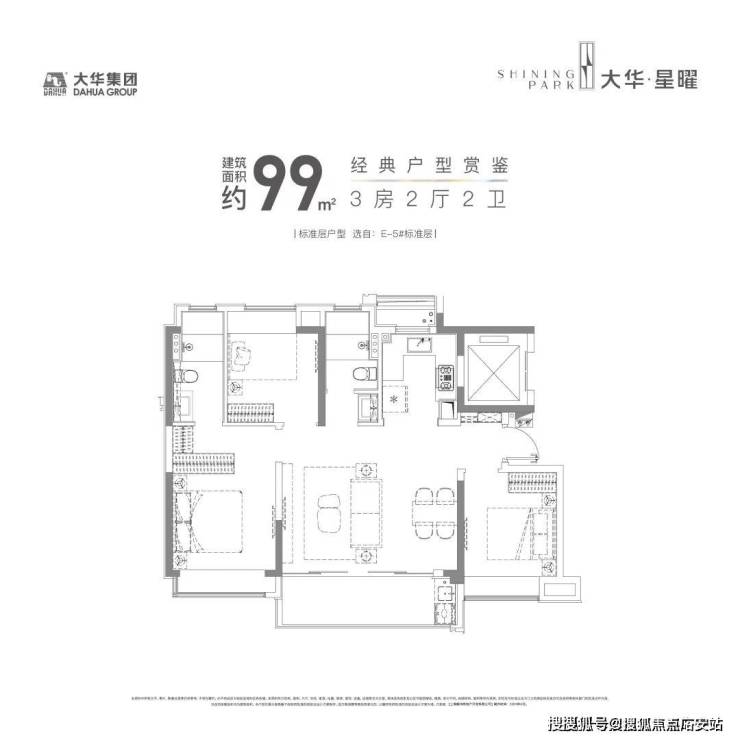 建面约99㎡3房2厅2卫▼