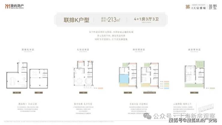 另外配置下沉式庭院、约2500㎡地下会所以及约3000㎡主题架空层;其中地下会所包含泳池、健身房、瑜伽室、水吧区、私宴厅等!