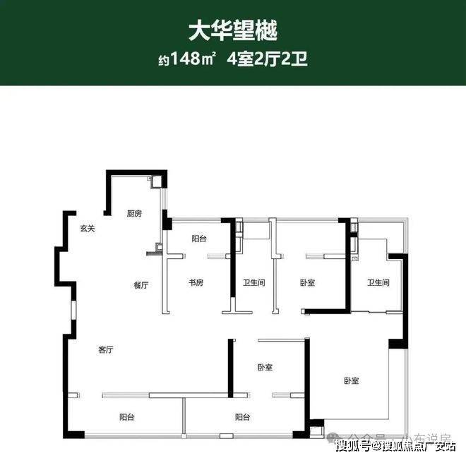 建面约148㎡户型更是做到了惊人的四阳台配置,远远超过新规标准。