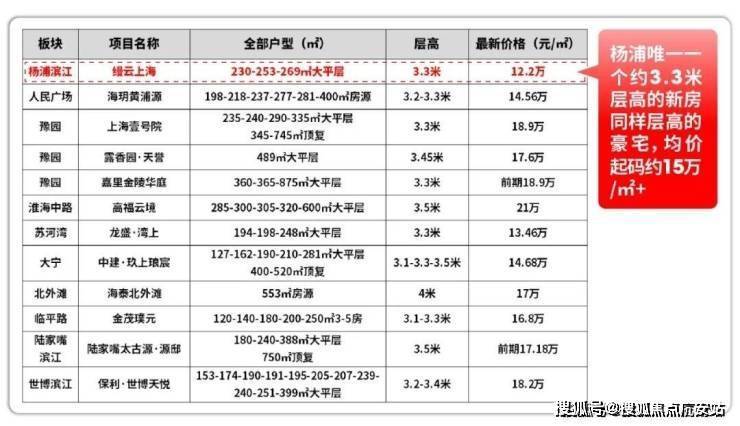 而同样层高的顶级豪宅们,起码都在约15万+的房价水平,但缦云上海的均价仅约12.2万/㎡。
