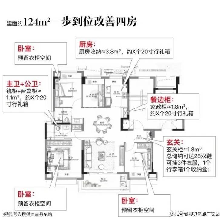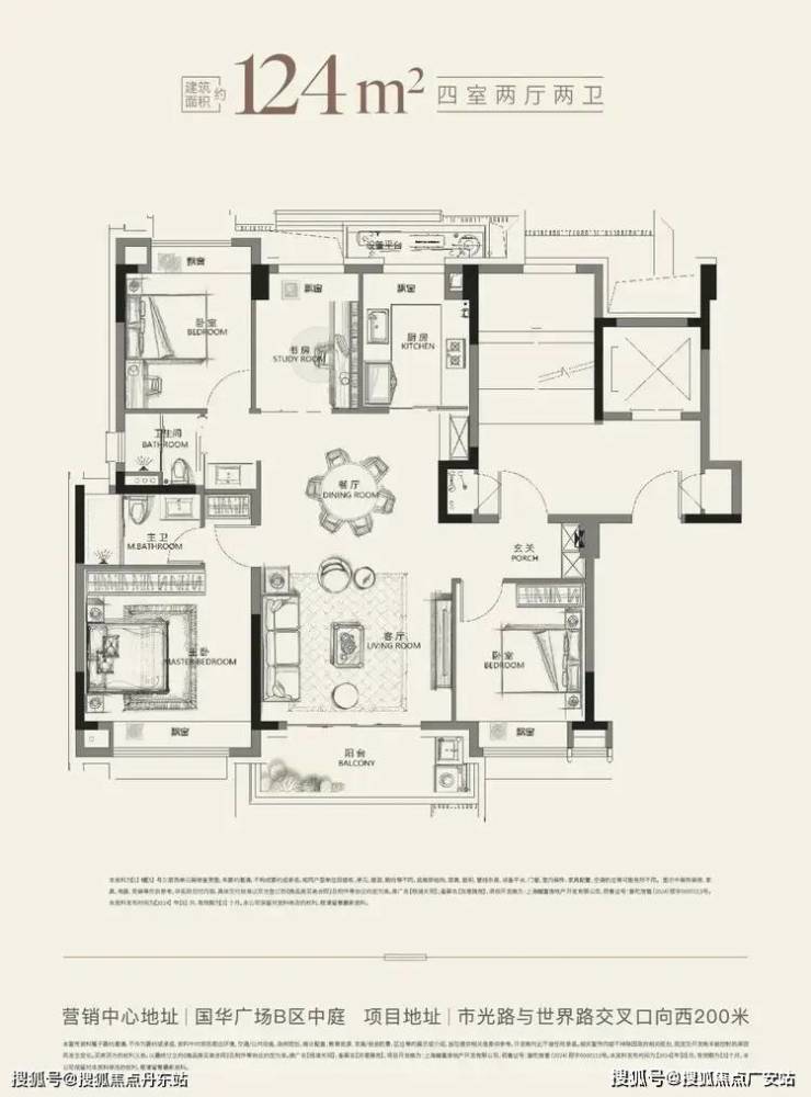 首先,约124㎡做4房,在保证实用性的同时,一般都会牺牲一些尺度感。但项目的4房甚至能容纳一个大圆桌,并且4间房间的尺度感都很有保证!