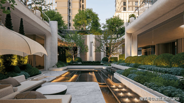 下沉式庭院会所更是集功能性与美学于一体,中央水景、休闲坐席与健身区、恒温泳池等,既满足业主的运动需求,也为社交聚会提供了优雅场所。
