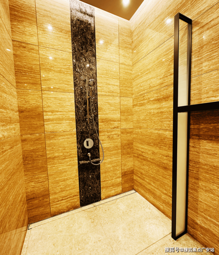实拍图在更衣室都用了大量石材,密码锁等等。