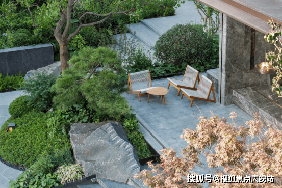 聆星客厅前方种植了松界王者——日本黑松,约4000万+的顶豪融创外滩壹号院的社区内,也有一颗同款;