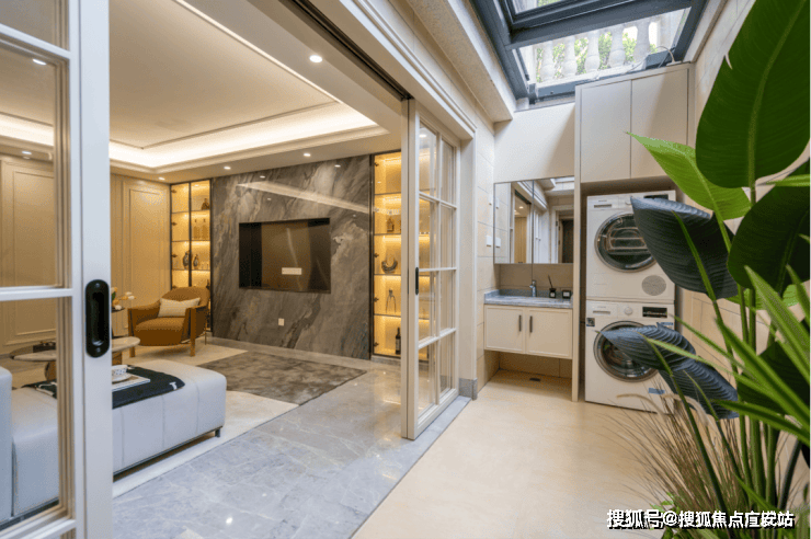 除了庭院,还有私享地下空间,大面的采光井带来明亮的视觉感受,可以在这里看个电影,或和朋友品茗畅谈。哪怕下雨,呆在这样的空间内也会感受到满满的安全感。