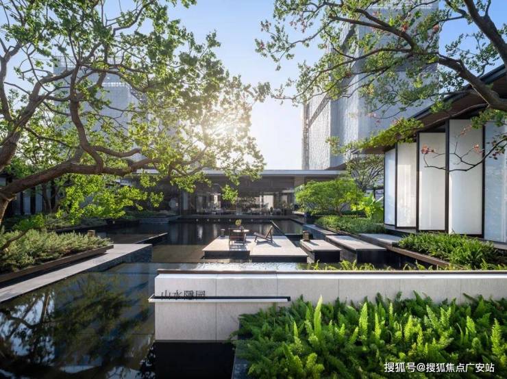 沿灯影长廊缓步漫游,随处可见的绿意蔓延,用现代设计手法,巧妙地打造出充溢东方意境的景致,使得山水隐园成为园中一处令人陶醉的艺术之地。