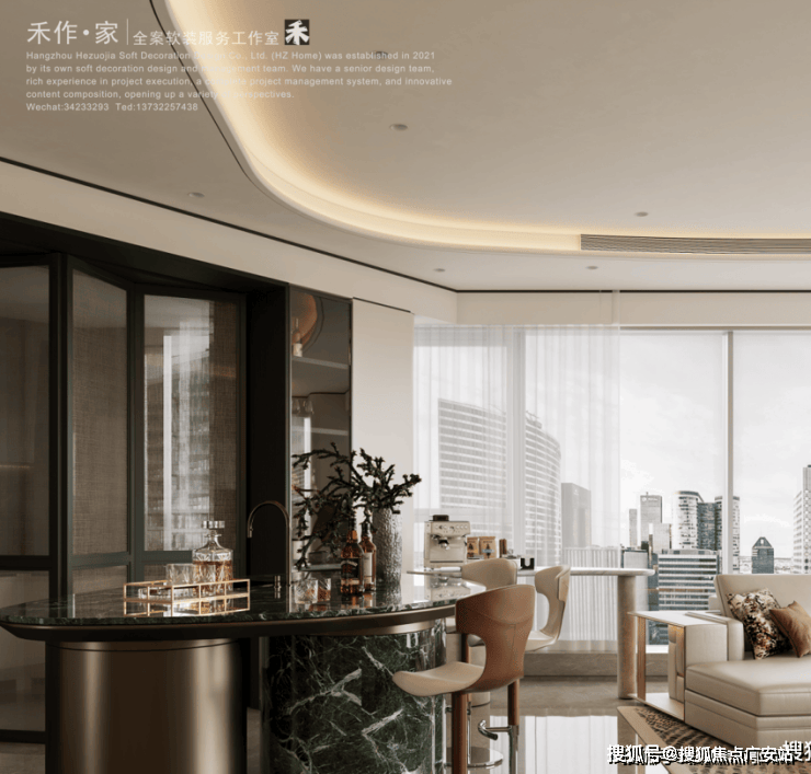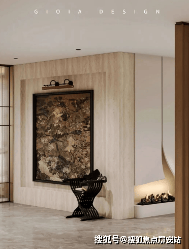 将艺术感进一步融入日常中。特别设计的专属门厅空间,是从电梯厅延伸到家,如同一处艺廊,放慢人的情绪;室内选用了浅金色奢石(外界也称其为“芬迪白大理石”)作为主要的石材,曲面的木饰面也为浅色,整体给人以明亮感。