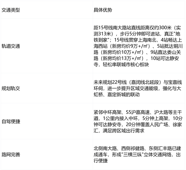 15号线&7号线双轨交护航:项目距离15号线南大路站仅约300米,就在家门口!可快速直达上海西站TOD。更临近7号线,可速达静安寺、徐家汇等核心商圈。出行通勤,无需等待。