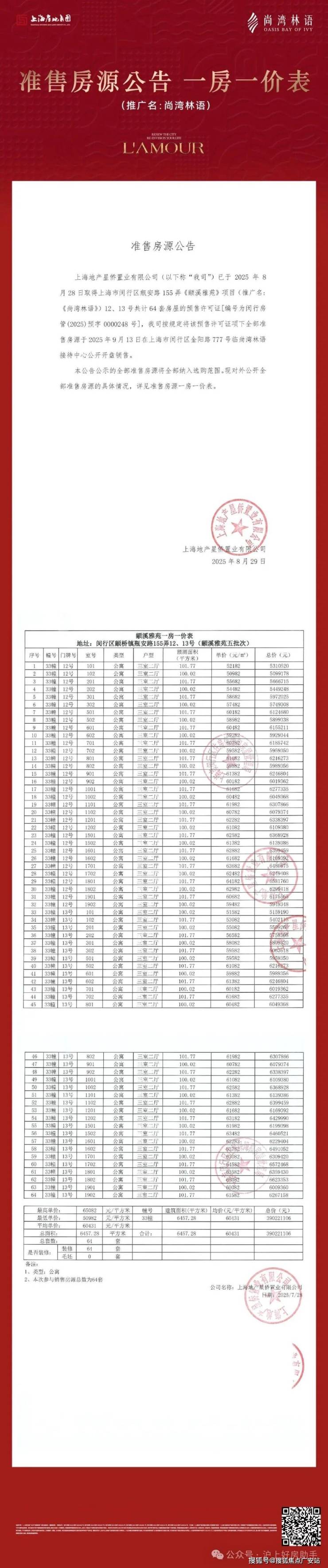 2022年9月23日,上海地产星侨置业有限公司以底价552183万元竞得闵行区颛桥镇生态隔带G9颛桥中心村段10-03、19-01、19-05、20-01地块(“城中村”改造项目-中心村),楼板价29760元/㎡,房地联动价为62000元/㎡!