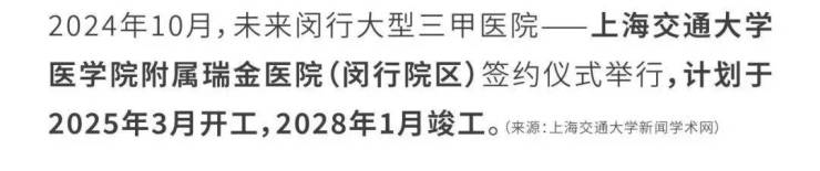 近邻复旦大学附属第五人民医院,距离吴泾医院只有差不多2公里,上海交通大学附属瑞金医院(在建,预计2028年1月竣工)
