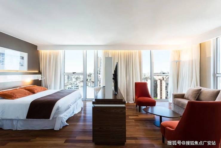再往上的楼层构成了塔楼的主体部分,这里是酒店的客房,其特点是宽敞、采光好且能欣赏到周围环境。客房配备高档设施和一流的客人服务。作为酒店设施的补充,屋顶设有室外游泳池、设备齐全的健身房和水疗中心。