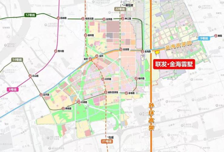 轨交层面,项目位于9/12号线金海路—顾唐路之间,直线距离金海路站约600米;14号线桂桥路站约2公里。