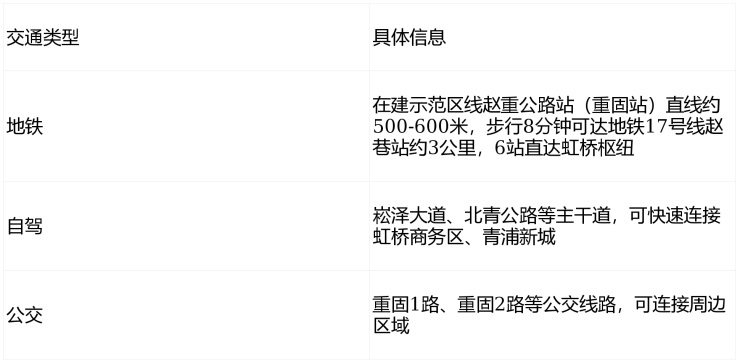 🚇双轨交便利:距在建示范区线赵重公路站(重固站)直线约500-600米,步行8分钟可达,3站直达虹桥枢纽,无缝换乘2、10、17号线等,15分钟直达虹桥商务区,25分钟到徐家汇,35分钟到陆家嘴。