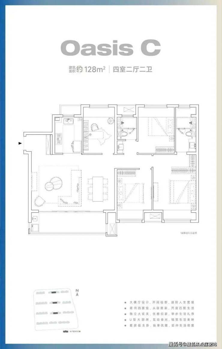 建面约128㎡四室两厅两卫设计,经典大面宽设计,开放式的餐厅、客厅、厨房,实现不受限制的多样生活。主卧套房,设有L型衣帽间、独立卫生间,生活品质提升了一个档次~