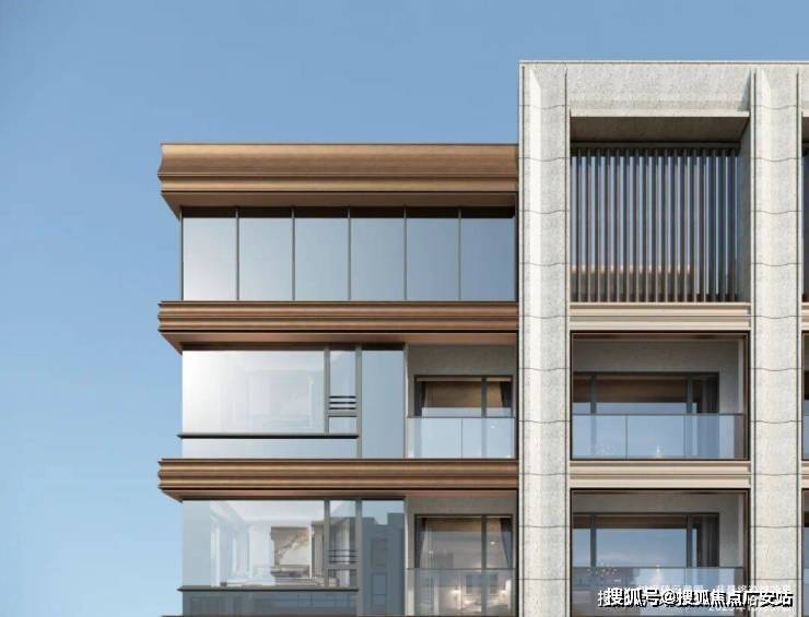 中海环宇玖章可视面都是 古铜色金属铝板、米黄色铝板/石材、边套270°大转角飘窗 ,且从正面、侧面到背面,立面都保持精致统一,四面平权尽显高端质感。
