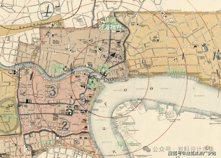 翻开1916年上海地图,以黄浦江与苏州河“一江一河”交汇处为原点,外滩瑞府售楼处:400-998-7894☎️☎️☑️☑️所在地块,恰处于城市核心第二圈层(1-2公里范围内),与华侨城苏河湾并列,而金陵华庭则位于第三圈层。