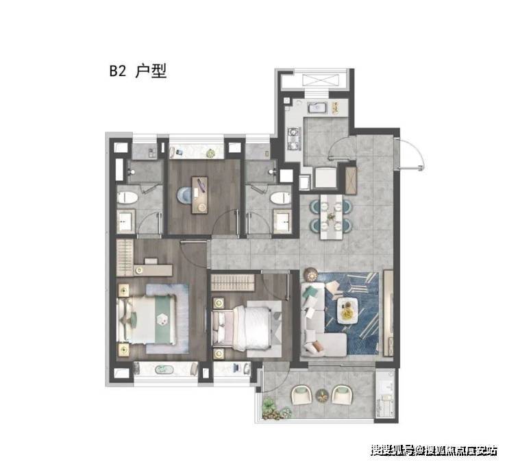 在整体的户型设计上,项目在做到方正户型的基础之上,保持多开间朝南设计,采光优越。整体户型动静分离,居住体验感更佳。