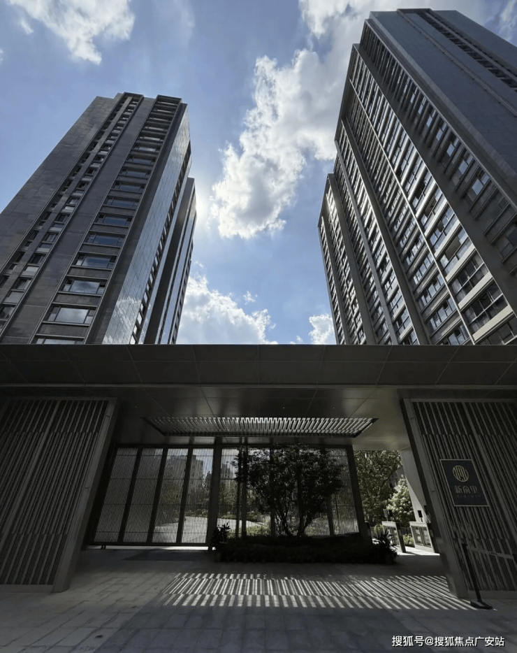 新俞里住宅造型现代典雅,强调水平线条和标志性,建筑形态简洁洗练,清晰明快。在建筑色彩上,采用银白色铝板及深色硬朗石材搭配