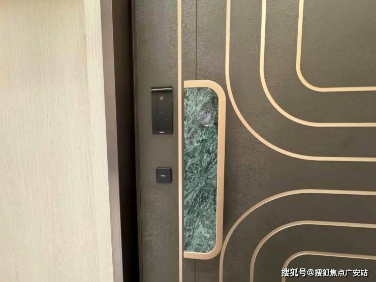 外观上,外部门把手金属镶边搭配绿色奢石,门内部的把手上还镶嵌了施华洛世奇水晶,算是一个小小的惊喜,开发商在打造装标上注重功能性的同时也不忘美观性。