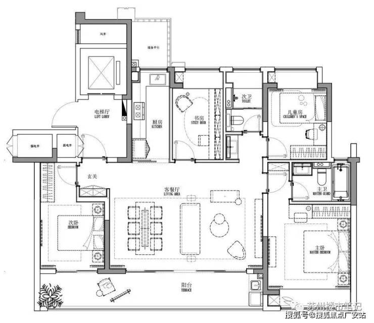 同级别4+1房设计,空间尺度和功能俱佳