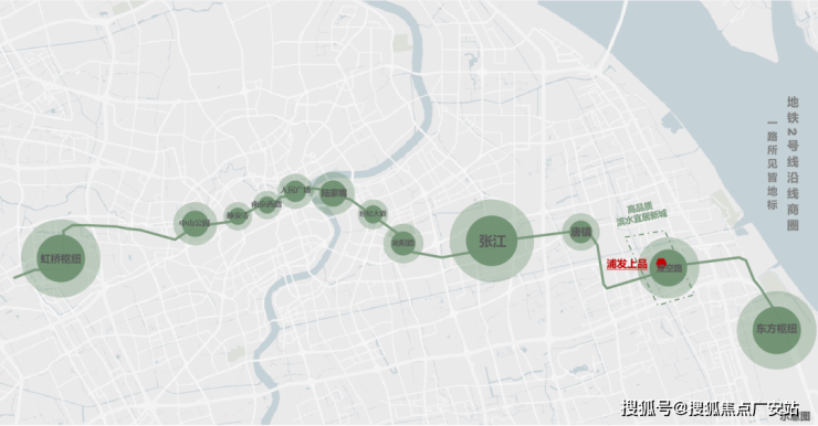 展开地图不难发现,整个上海的核心交通枢纽(虹桥+浦东机场),顶级商务CBD(南京路、陆家嘴、人广、静安寺等),和高尚住宅区(西郊、碧云、唐镇)全部都被2号线串联起来。